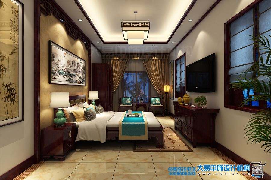 女兒房典雅奢華、一幅唯美的中式畫裝飾床頭,真乃國色天香之調