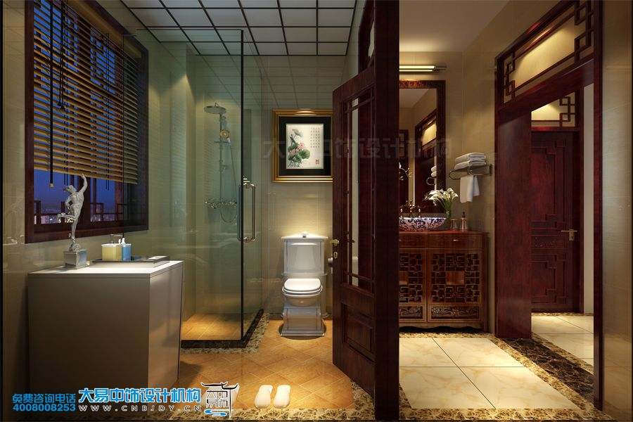 一樓衛生間古樸、典雅、現代感十足