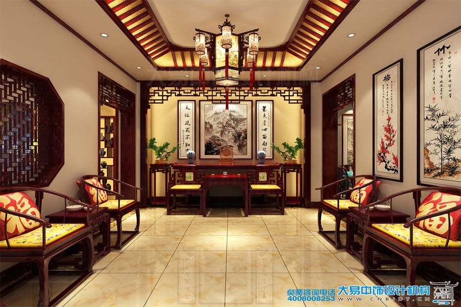 鄭州1200平米豪宅別墅中式裝修效果圖欣賞