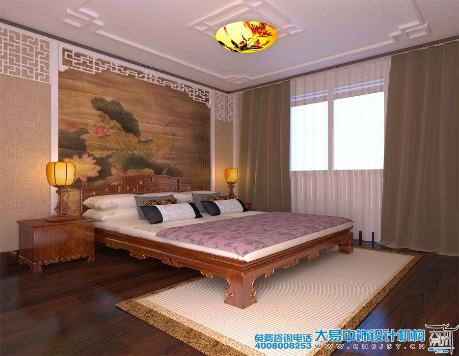 臥室大面積地留白,和顏色經典的中式家具,讓人心情寧靜的同時有更多遐想