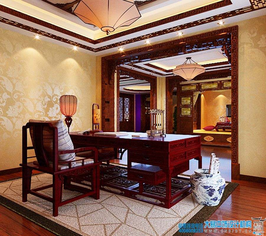 古樸色調的書桌,清雅灑脫的書畫卷軸,讓書房帶著特有的儒雅尊貴之感
