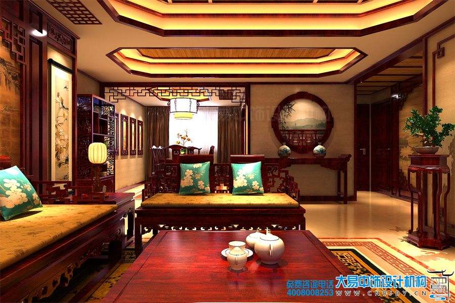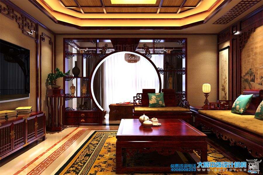 客廳中式設計古樸、大氣,讓空間看起來清亮、寬敞