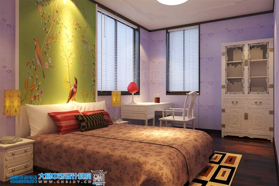 老人房臥室采用了暗色調(diào)和素雅圖案為主,營造出深沉、穩(wěn)重的氣氛