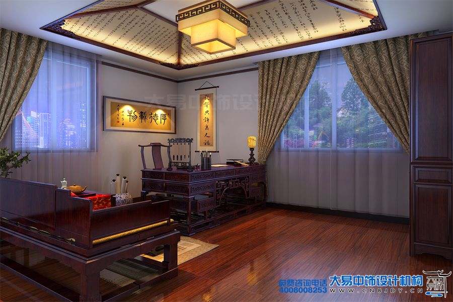 案例分析:現代新中式式風格,極盡精煉簡潔之筆,營造出清雅、愜意的裝飾環境。就拿這套位于鄭州的別墅中式裝修效果圖來說,在大易中飾設計師的筆下,手法、凝練,毫無繁瑣之意,復古卻不深沉,厚重的實木中式家具與精致唯美的木雕藝術糅合為一,加之色彩與燈光的搭配,也散發著無比雅意的溫馨之調。當然,設計師靈動曲美的線條搭配和諧。不僅讓整個家庭中式裝修舒適、實用,也能夠從視覺角度勾勒出大氣與端莊的現代藝術美韻。