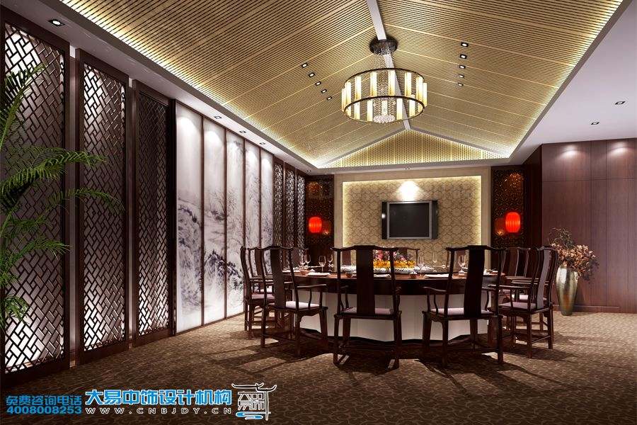中式餐飲包間內部構造精妙且時尚大氣