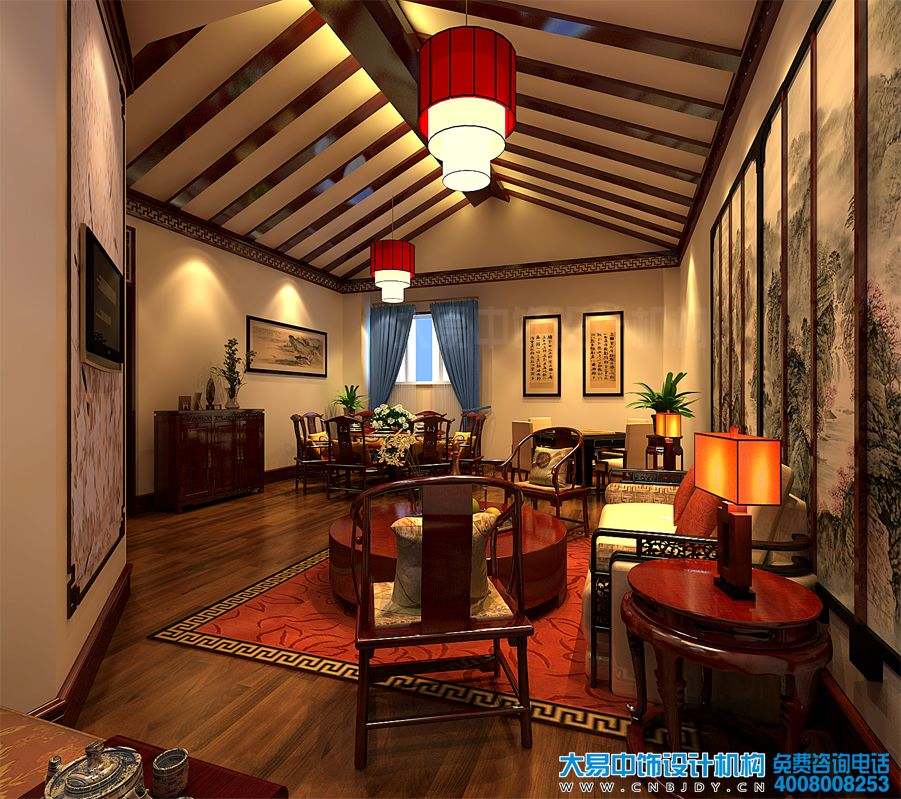 案例賞析:簡約中式風格的餐飲會所裝修效果圖,創造了屬于視覺上的那種寧靜與清雅的感覺,更增加了餐飲空間的溫馨基調與藝術感染力。在結合了古典建筑物的設計構造與藝術品搭配上,大易中飾設計師更是精挑細選、力求達到與整體風格統一的和諧感。比如,簡練的木頂隔斷、大量的留白手法、厚重實用的中式家具、唯美清幽的古典燈飾、墨香儒韻的墻體掛畫等等,不管是從形態上,還是色彩上都能凸顯其優雅高貴之韻。