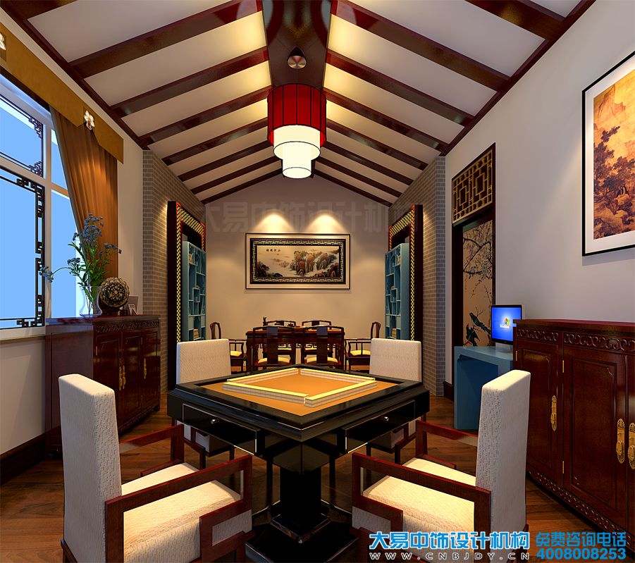 麻將室正面裝飾雖然時尚簡約,也夾雜著復古的氣息