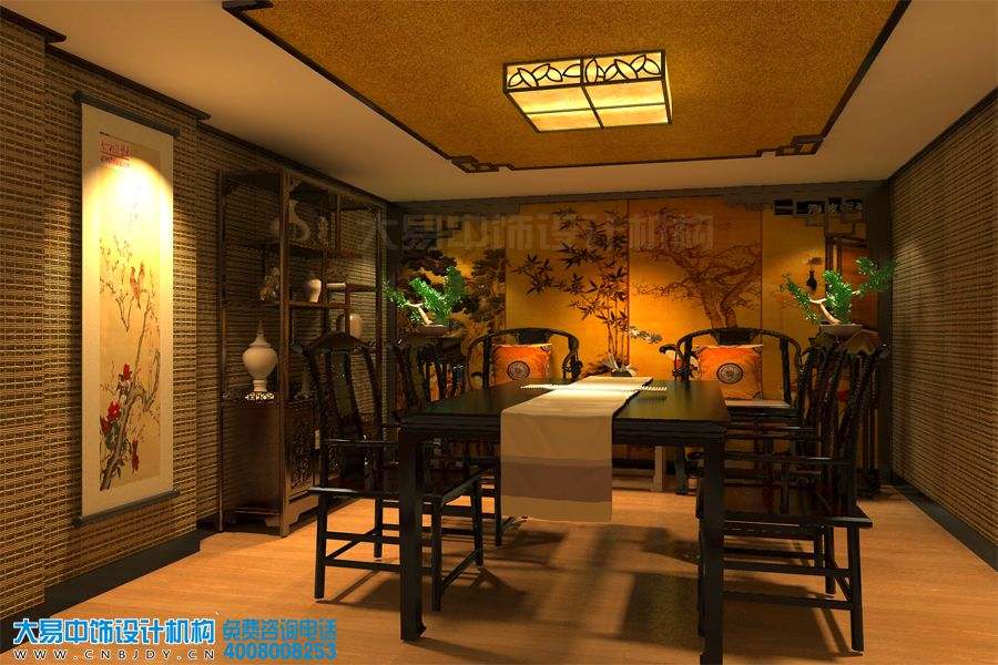 新中式風格的茶樓裝修效果圖,以復古、柔美的裝飾基調映入人們的眼簾,加之茶樓中大量的傳統藝術元素和木質條案、水墨掛畫的陪襯,讓整個茶樓古雅之意得以彰顯,宛若一縷清風悠揚的在居室之內空靈飄逸。當人們走進茶樓之后,能夠切身從整體空間中感受到茶樓的寧靜、深邃與禪韻。仿佛有種讓人癡醉于茶與畫的意趣中,在禪與茶的氣息中感悟人生,陶冶情調。