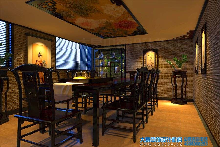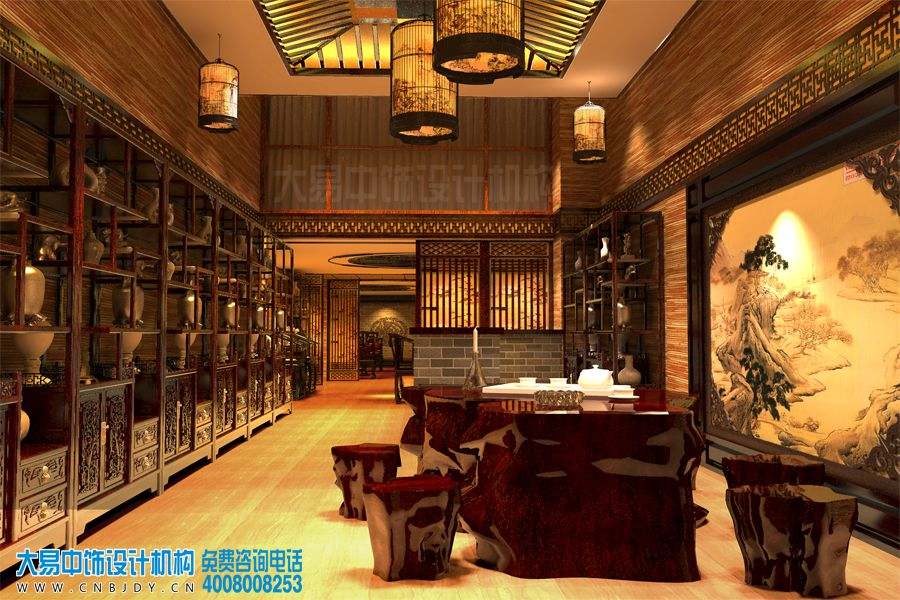 茶樓設計大廳裝飾結合了復古與現代藝術裝飾的精華,做工精細、設計獨特,充分體現了濃郁的中式文化內涵