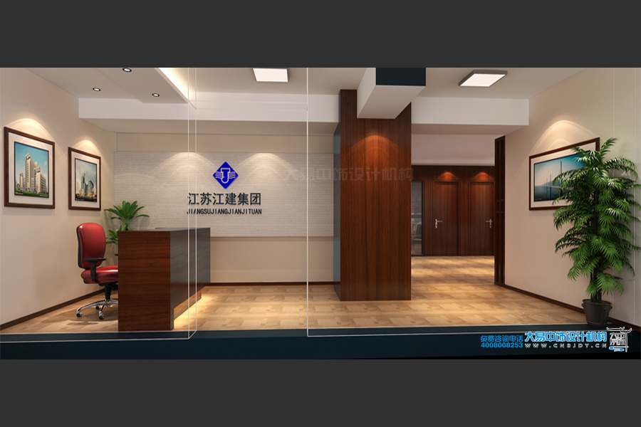 進門門廳設計簡潔、現代感十足,不過logo設計與點綴的木格墻飾,卻凸顯出公司濃郁的企業文化內涵