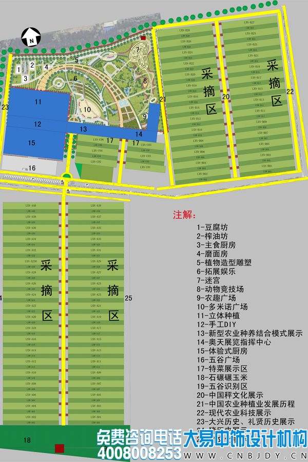 從大平面圖上,我們可以清楚的看到整個農業科技體驗園的功能區域規劃。