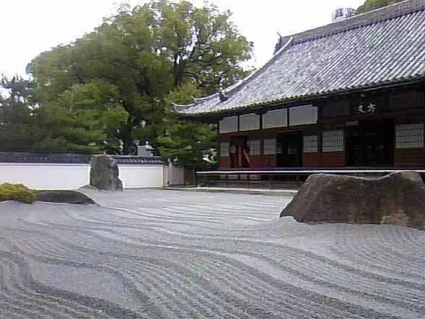 沙為水以石為山是枯山水景觀的特點。