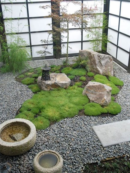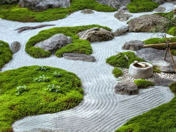 枯山水常被認為是日本僧侶用于冥想的輔助工具,所以幾乎不使用開花植物,這些靜止不變的元素被認為具有使人寧靜的效果。