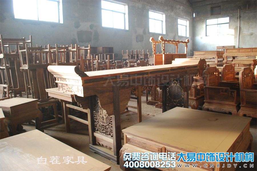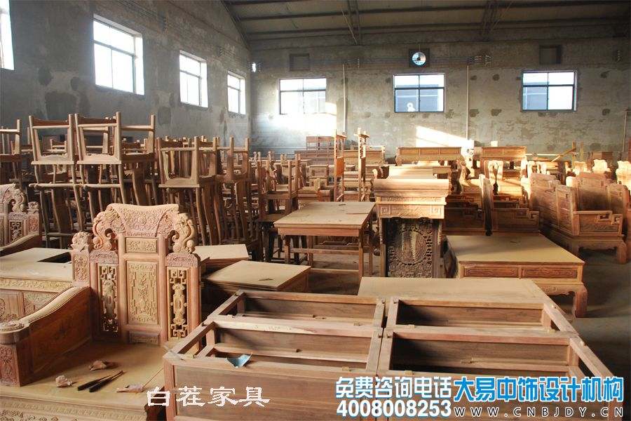 從庫房擺放的白茬家具,可以看到大易紅木家具工藝精湛,做工細膩