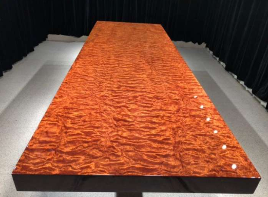 2、看板型。在我國進口的巴西花梨的一個關鍵特性取決于其徑級大、板寬幅,它是目前為止在我國進口的及在我國自產的別的木料所無法比擬的。市場上甚至可以看到徑級超出3米的木材及板的寬幅超出2米的板材。因而,從板型上分辨巴花寬板也是很容易的。