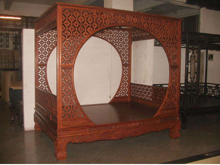 月洞式架子床,是明代家具中常見的一種。月洞架子床以其獨(dú)特的圓月造型,被賦予“圓滿”的意義,寄托了人們對(duì)家庭美滿的美好愿景。