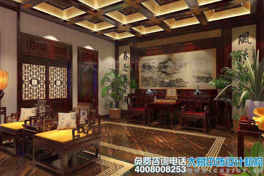 案例賞析:收藏品會(huì)館是對(duì)傳統(tǒng)文化的宣揚(yáng)與保護(hù),更是對(duì)精神觀念的繼承與汲取。所以,在設(shè)計(jì)這套位于北京的某個(gè)人收藏品會(huì)館裝修效果圖時(shí),大易中式設(shè)計(jì)師不僅僅要側(cè)重會(huì)館內(nèi)部的裝飾效果,更要運(yùn)用一系列古典元素來(lái)渲染濃郁的人文情懷,去塑造出典雅、別致的文化氣質(zhì),使會(huì)館在厚重的中式氣息中,也不失有著輕松、愉悅的休閑氛圍,整體上給人帶來(lái)一種視覺(jué)美感,從而凸顯出會(huì)館豐富的文化內(nèi)涵。