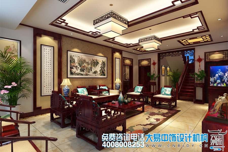 案例賞析:這套位于鄭州的1200平米復式樓中式裝修效果圖,沉穩、大氣,但是卻不繁瑣、浮夸。大易中飾設計師采用新中式風格來簡化傳統裝飾元素本身的壓抑與深沉,并結合現代時尚的審美意蘊,營造出大氣、素雅而不乏靈動基調的豪宅居住空間。而其中最能凸顯中式華貴與雍容氣質的,還有華美的紅木家具、精致的雕花工藝,古樸的裝飾配飾、高雅的木質紋理,這一切都讓中式豪宅在新穎、創意的大前提下,展現出無形的魅力。
