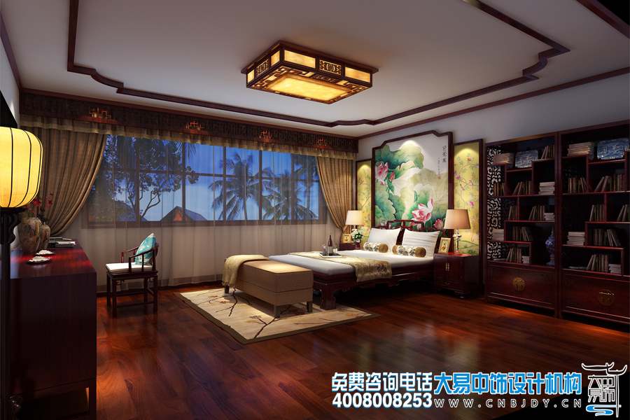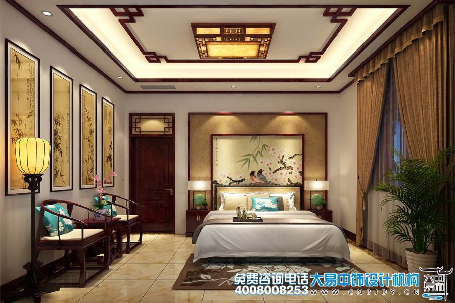 女兒房典雅奢華、一幅唯美的中式畫裝飾床頭,真乃國色天香之調