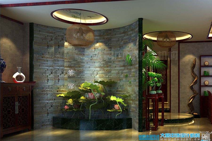 如何裝飾出理想效果中的茶藝空間。大易中飾設計師是這樣為我們解釋的:中式茶館設計不光是體現出禪茶一味的靜謐環境,更能展示出獨特的民族精神與文化思想內涵。所以,對茶館的裝飾必須把握整體性的前提下,以象征性的符號與典型的審美需求來凸顯茶館深遠的意境之美。這已不單單是簡單的裝飾元素堆積,也不是奢華富貴的再現,極具創意的技法與對茶道文化的理解與把握,才能實現“象者,意之所存,意者,境之所彰顯”意象相托的視覺升華。