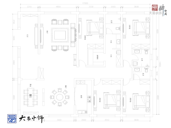 由于房間的外觀及市內格局都是按中式風格四合院建設的,所以戶型未做大的調整,僅僅是把客廳餐廳茶室的空間做了中式風格的景窗隔斷裝飾。產生景中透景的四合院中式空間設計層次感,更加富有中式生活韻味。