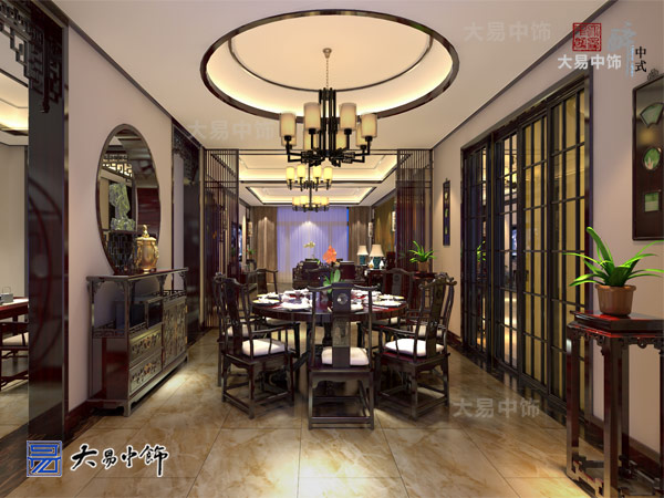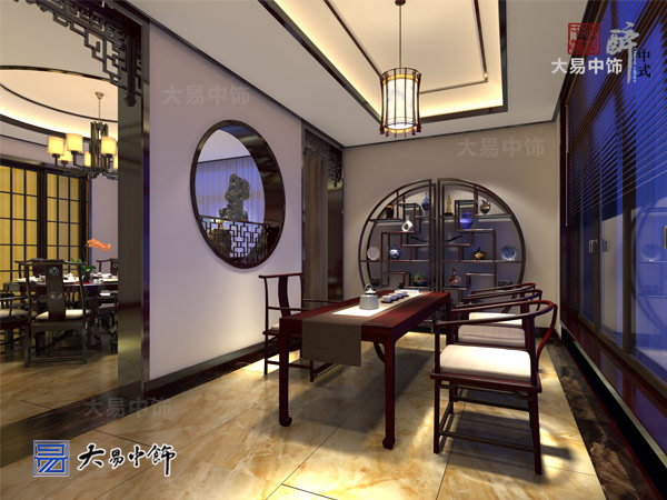 餐廳茶室的空間做了中式風格的景窗隔斷裝飾。產生景中透景的空間設計層次感,更加富有中式生活韻味。
