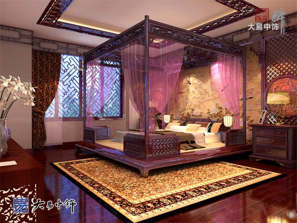 四合院主臥室的中式裝修設計采用傳統中式生活的架子床作為主體,臥室的吊頂選材中式花格環繞四周,為整個臥房提升高端品質生活同時又結合傳統中式風格設計理念。從而讓我們細細品味四合院中式風格豪宅設計裝修居住生活。