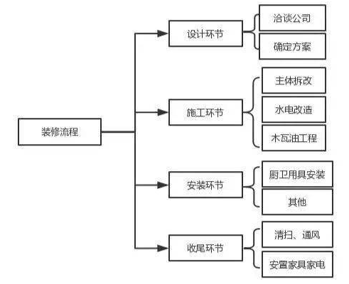 裝修可以大致分為四個環節,分別是:設計環節、施工環節、安裝環節、收尾環節。