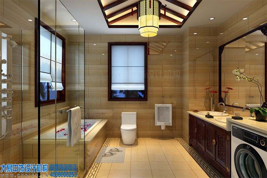 衛浴間 中式裝修 已經不再單單遵循私密的特征。它將以開放式呈現在人們的眼前,將睡眠、沐浴、化妝等功能連為一體。最為家居裝修上最為溫馨、愜意的地方,為業主帶來更舒適的
