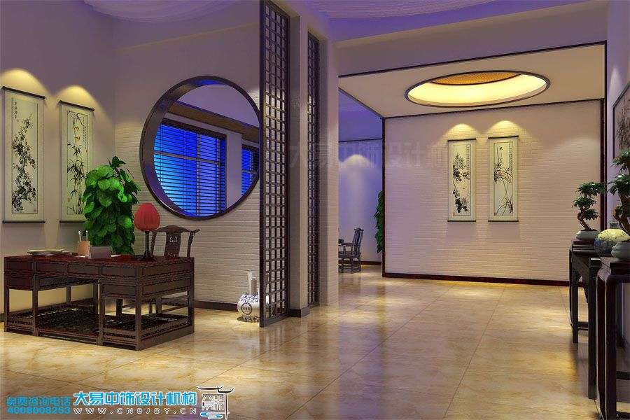 案例賞析:本套簡約中式住宅裝修效果圖,以淺色為主,大理石地板的光潔與寥寥幾筆的靈動線條,映襯出住宅簡樸、淡雅之風。室內空間寬敞明快、背景墻面利用木雕框架勾勒出八卦方圓不同的形狀。餐廳、臥室之內鑲嵌畫屏為飾,清新凝練,沒有多余的裝點,吊頂之上是造型簡潔的木框搭配,從遠處入眼,就能嗅到居室空間的典雅氣息。