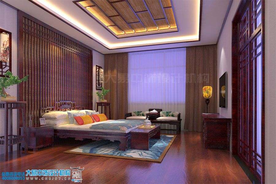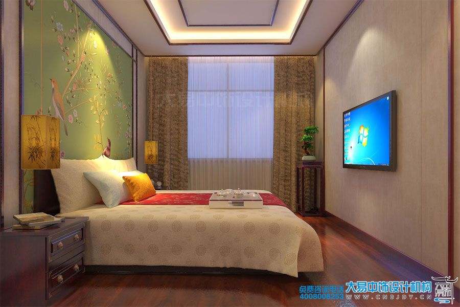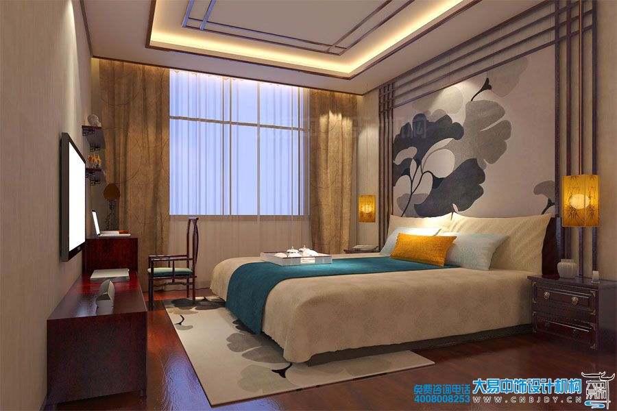 臥室裝修鑲嵌了水墨荷花圖,給整個空間增添了優雅與古典風情