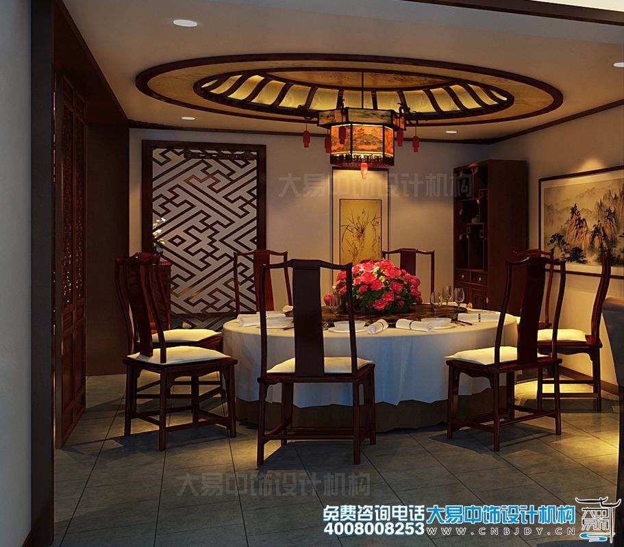 餐廳中式設計裝修,圓形吊頂與圓形餐桌相呼應,團圓吉祥,和美溫馨。餐廳簡約古樸的裝飾搭配著燈飾溫暖的光源,渾然天成,足見中式高雅秀潔。最妙的是墻上的掛畫,隨意點綴著空間,寫意人間、詩化生活,讓生活中的每一個場景都變得古色古香,讓人心醉。