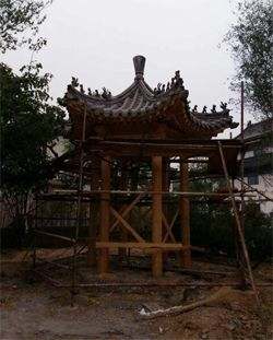 從照片中,我們可以看到到規整、有序的工地上,工人們正在進行著緊張的施工工作 木構件作為中式古建的典型構件,擁有者得天獨厚的人文底蘊 亭子雖然正處于施工期,可古雅的造