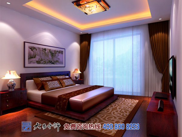 色彩以深色沉穩為主,因中式家具色彩一般比較深,這樣整個別墅色彩才能協調,再配以紅色或黃色的靠墊、坐墊就可烘托別墅的氛圍,這樣也可以更好的表現古典家具的內涵。