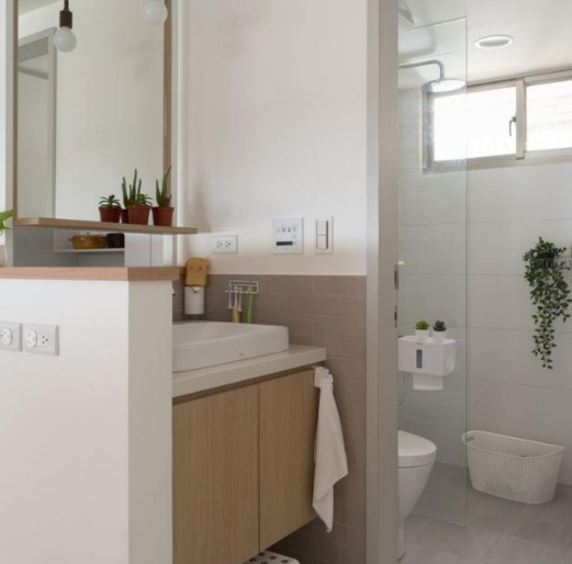 洗手臺外移后,可能會覺得光禿禿有點不美觀,所以空間足夠的話,可以做上隔斷進行遮擋,像是黑框玻璃、鏤空隔斷都是個不錯的選擇~