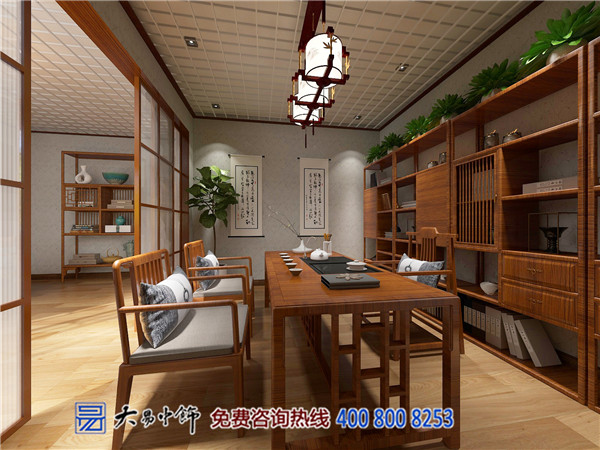 案例賞析:位于河南開封的茶樓想要設(shè)計(jì)一款中式風(fēng)格,要求有中式文化的氛圍又有現(xiàn)代的簡(jiǎn)約,大易中飾設(shè)計(jì)采用新中式設(shè)計(jì)風(fēng)格,木質(zhì)裝飾來(lái)營(yíng)造東方文化氛圍。